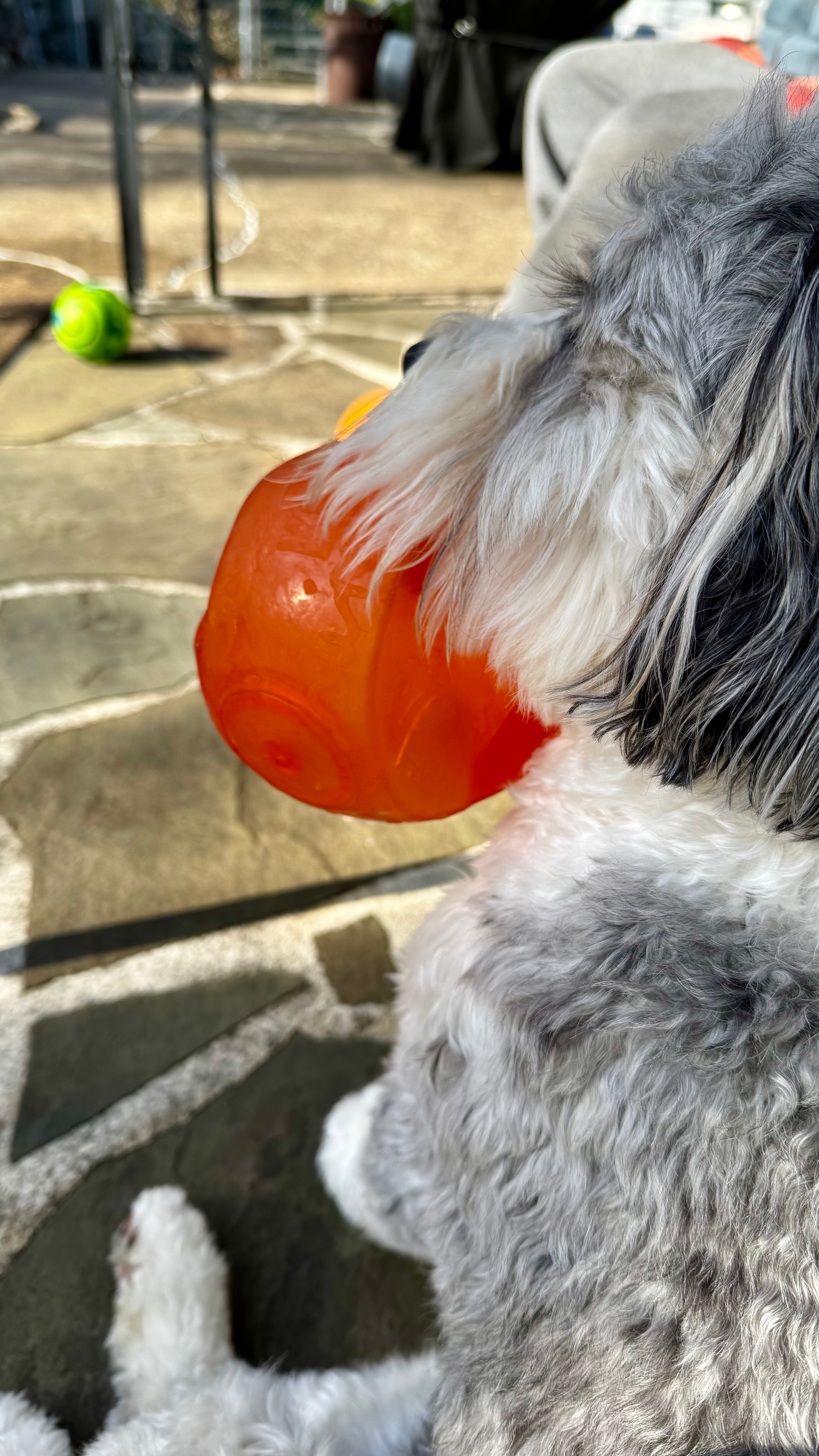 I love WINNIE! 🥰 I had a squeaky ball like that for Yogi and he went crazy! Very cute!